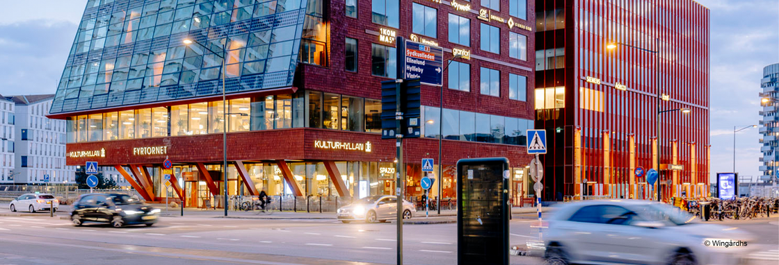 Das Fyrtornet ist Schwedens höchstes Bürogebäude aus Holz mit einem zentralen Erschließungskern aus Brettschichtholz. Mit seinen 51 m Höhe ist das Fyrtornet nicht nur Malmös erstes Bürogebäude in Massivholzbauweise, sondern auch das höchste Gebäude dieser Art in ganz Schweden. Es liegt im Süden der Stadt und gehört zur Quartiersentwicklung „Embassy of Sharing“. Der 11‑geschossige Bau gilt als Meilenstein des nachhaltigen Bauens und besteht oberhalb des Erdgeschosses vollständig aus Holz. Auch der aussteifende Kern mit Treppenhäusern und Liftschächten wurde in Massivholz umgesetzt. Zusätzlich zu modernen Büroräumlichkeiten umfasst das Gebäude eine Stadtbibliothek sowie verschiedene Begegnungsräume.