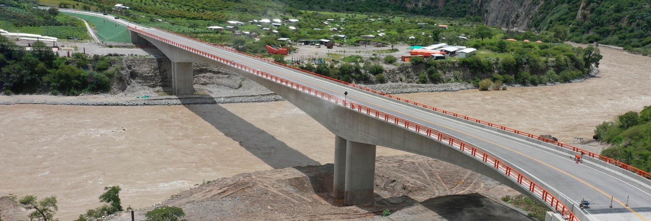 The Puente Pampas is a 280 m long structure with a span distribution of 70 m + 140 m + 70 m. It features a post-tensioned concrete box section constructed using the balanced cantilever method. The piers are designed as wall-type piers, supported by deep foundations with 1.2 m diameter piles. Conversely, the abutments are closed-type, utilizing shallow foundations. The bridge employs a seismic configuration with a monolithic pier-deck connection. Double diaphragm type piers provide the necessary flexibility in the longitudinal direction.
