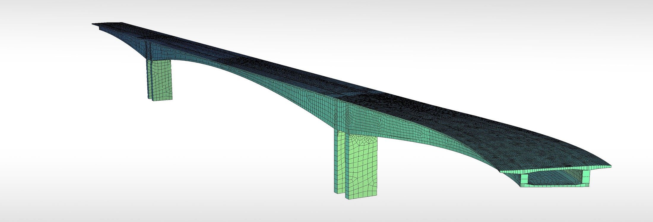 The calculation model developed with SOFiSTiK was used to perform geometry control during the symmetrical balanced cantilever construction process from the piers. Using a stage-by-stage finite element model, where piers and the deck were modeled as beam elements, all construction stages were analyzed through linear analysis, accounting for rheological phenomena (creep and shrinkage).