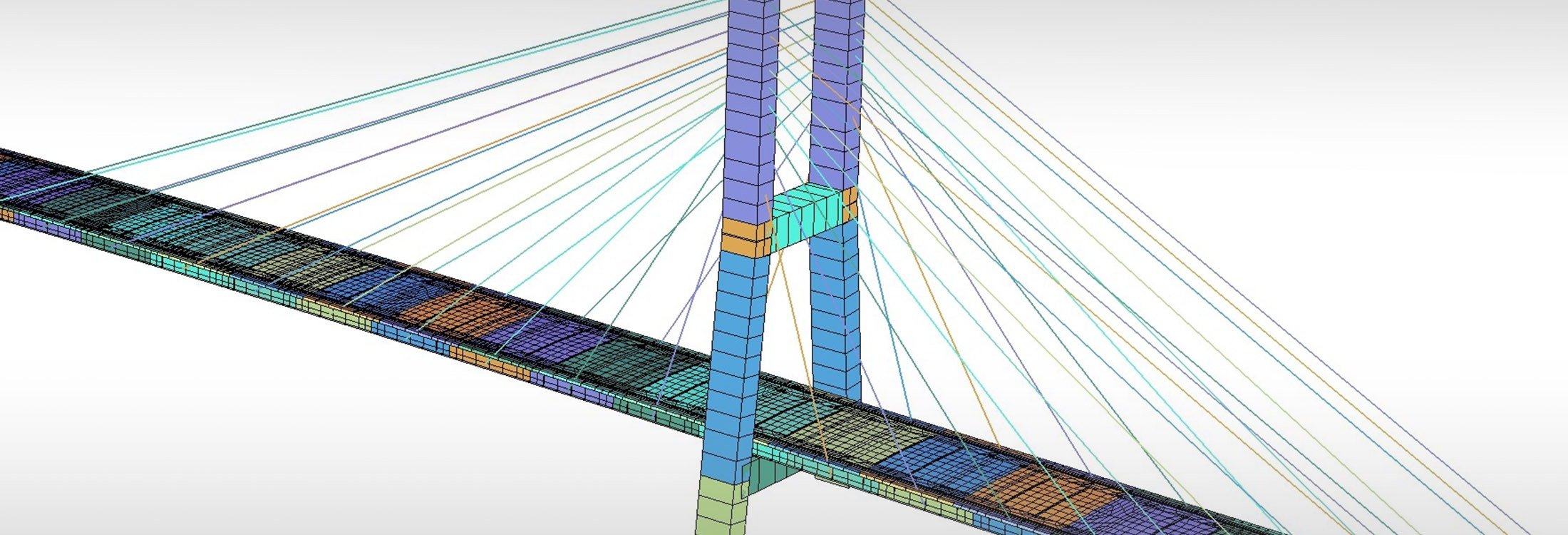 The calculation model developed with SOFiSTiK was employed to perform exhaustive control of the geometry and stay cable forces during the construction process. Using the stage-by-stage finite element model, where pylons and steel girders were modeled as beam elements, the deck slab as shell elements, and the stays as cable elements, all construction stages were analyzed via linear analysis.