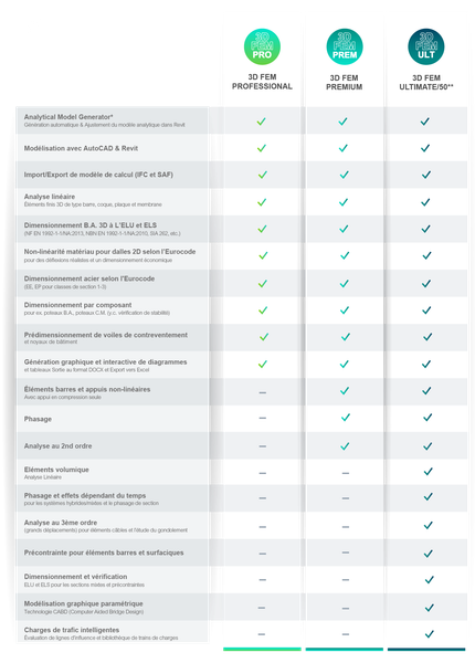 ** Ultimate 50 comprend toutes les fonctionnalités du paquet 3D FEM Ultimate pour des projets limités à 50m x 50m x 20m.