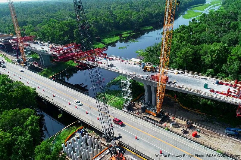 Because the Wekiva River is designated as an Outstanding Florida Water and a National Wild and Scenic River, the design-build team is adhering to strict environmental requirements to protect the environment and wildlife in this preserve. This includes limiting impacts to the river, trees and approach sections and construction of wildlife bridges totaling 23,000 feet in length and maintaining the recreational value of the river during construction.